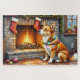 Quebra-cabeça Carolina Dog Fireplace with Christmas Lights