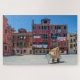 Pintura da praça de Veneza. Carrinho com caixas no meio da antiga praça italiana com edifícios coloridos em Veneza, Itália. Correio, serviço de entrega em Itália. Caixas deixadas sozinhas.