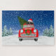Um presente de Natal bonito para amantes de cães, dirigir um carro vermelho na neve é uma ideia perfeita para alguém que ama cachorros.