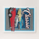 Esta é uma renderização de um carro clássico criado usando gizes e marcadores com fundo adicionado digitalmente.