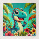 Quebra-cabeça Cartoon Adorável Dinossaur Amidst Vibrant Tropical