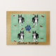 Estilo de desenho animado "Boston Terrier" com uma dispersão de ossos e trilhas de pata. Este design é destinado ao azulejo sem falhas.