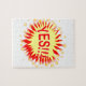 Um estilo de desenho animado sim um motivo explosivo sobre um fundo branco
