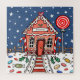 Uma ilustração colorida de uma casa festiva de pão de gengibre. O exterior da casa é decorado com duas canetas doces e tem uma grande árvore pirulito no jardim. O chão está coberto de neve brilhante e branca com açúcar em gelo, e está coberto com doces. Esta quebra-cabeça personalizada de serra faria o presente de Natal perfeito para uma família.