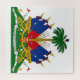 Este design apresenta o casaco nacional de armas do Haiti (oficialmente conhecido como a República do Haiti), que é um país na ilha de Hispaniola no arquipélago das Antilhas Grandes do Mar Caribe. O Haiti está localizado a leste de Cuba e na Jamaica e a sul das Bahamas e das Ilhas Turcas e Caicos. O Haiti ocupa a porção oeste de Hispaniola, a ilha que ele compartilha com a República Dominicana. O Haiti é o país mais populoso do Caribe. A capital e maior cidade do Haiti é Port-au-Prince.