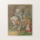 11" x 14" quebra-cabeça de serra de vaivém com uma imagem do vintage de Alice e do cavaleiro branco. Inclui a caixa de presente com imagem na tampa.