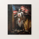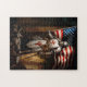 Uma ilustração mostra um cavaleiro Templário em armadura de cheio, orgulhoso de ter uma grande bandeira americana enfiada sobre o ombro. O cavaleiro está coberto de uma armadura prateada com um túmulo branco adornado com cruzes vermelhas. Ele tem um longo funcionarios com a bandeira americana acoplada, e seu capacete está fechado, dando a ele uma expressão estática e determinada.