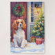 Brighten the season with this charming Christmas card featuring a Cavalier King Charles Spaniel on a festive snowy porch. A glowing lantern, holiday wreath, and decorated tree create a warm and cozy winter mood illustrated in soft watercolor style. The blank interior offers plenty of space for personal greetings, making it perfect for dog lovers, holiday correspondence, and thoughtful gifting.