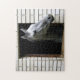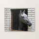 Esta quebra-cabeça tem uma foto de um cavalo grudando sua cabeça em uma janela.