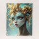 A mesmerizing digital illustration of an ethereal celestial goddess. She wears a magnificent, flowing golden crown that glows with divine light against a soft turquoise background. Her luminous blue eyes and delicate features create a peaceful yet powerful atmosphere. This high-detail artwork is perfect for a relaxing puzzle experience or as an elegant gift for fantasy and mythology fans.