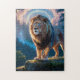 A majestic lion stands atop a forest cliff, illuminated by glowing runic markings and ethereal light. Behind him, a celestial halo and ghostly forest spirits create an atmosphere of magic, strength, and ancient power. This artwork blends realism with fantasy to deliver a vibrant, detailed, and emotionally powerful scene — perfect for fans of mythical creatures, spirit animals, and highly detailed fantasy art.