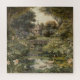 pintura em vintage de uma cena botânica de cisnes nadando na água em um jardim inglês com lírios, pontes e muitas flores exóticas