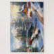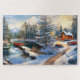 Uma cena de inverno idílica com uma cabana logarítmica e caminhos cobertos de neve nesta linda cena de aquarela
