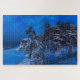 Quebra-cabeça Cena de inverno noturna com pinheiros cobertos de