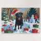 Quebra-cabeça Cena Festiva de Neve Preta de Natal Labrador