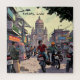 Estilo de quadrinhos ai ilustração da área de centro de Kolkata, Índia, Motocicletas estacionadas e carros. Um quebra-cabeça com uma ilustração de movimentada rua centro com prédios, restaurantes, compras e pessoas em suas motos.