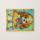 Quebra-cabeça cesto de flores de cãozinho fofo