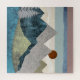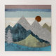 Paisagem moderna com cores e padrões únicos mostrando uma paisagem de montanha com uma linha do horizonte estriada.