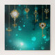 Chaves Douradas e antigas com engrenagens e marcadores penduram em correntes douradas sobre fundo verde luminoso.