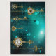 Chaves Douradas e antigas com engrenagens e marcadores penduram em correntes douradas sobre fundo verde luminoso.