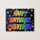 Esta vibrante e divertida design de quebra-cabeça de quebra-cabeça com tema de aniversário tem a mensagem "HAPPY BIRTHDAY, CHEYENNE" com os personagens que têm um espectro colorido de arco-íris inspirado em um padrão de gradação, além de um incrível padrão de fundo de campo estelar. Um quebra-cabeça excitante como este pode ser uma maneira divertida de enviar cartões de aniversários a alguém chamado Cheyenne. [~Z0000468]