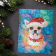 Chihuahua Breed Dog Christmas apresenta uma aquarela de Chihuahua com um chapéu de Papai noel vermelho, uma coleira vermelha de Natal e uma aquarela galáxica.