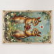 This charming vintage postage stamp design features two striped Chipmunks standing upright, one shyly presenting the other with a single, heart-shaped acorn tied with a red ribbon. A sweet, miniature Valentine's Day design.