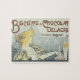 Uma bela jovem de arte está pintando potes de chocolate — este anúncio é do final dos anos 1800.