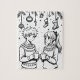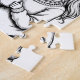 A cozy scene unfolds as two characters, a boy and a girl, stand side by side, each holding a steaming mug. The camera slowly zooms in, capturing their warm expressions and the intricate details of their festive sweaters. Surrounding them, holiday decorations hang from above, creating a cheerful atmosphere. Soft, diffused lighting enhances the mood, casting gentle shadows that dance across the puzzle backdrop. The scene flows with a heartwarming rhythm, inviting viewers into a moment of shared joy.