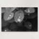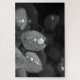 Foto preta e branca de uma gota de chuva em uma folha. Espaço vazio disponível para adicionar seu próprio texto.
