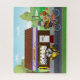 Embarque numa viagem encantadora com este charmoso quebra-cabeça de quebra-cabeça! Esta ilustração de desenho animado ilustra um jovem andando de bicicleta perto de um compro de bicicleta, enquanto uma coruja parte com pneus novos comprados da venda de pneus. Este quebra-cabeça não só é divertido, como também pode ser exibido com orgulho na sua parede quando concluído. Faz um presente perfeito para qualquer criança!