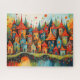 Uma cidade de conto de fadas de fantasia colorida. Esta quebra-cabeça única promete prazer artístico e um desafio gratificante