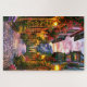 Um corredor vibrante e sonhador numa cidade mágica no pôr do sol. A rua cobblestone reflete o brilho quente das lanternas em tons de ouro, verde e cremson, criando um ambiente suave e encantador. As paredes dos edifícios altos e estreitos são enfeitadas com flores coloridas em cascata de caixas de janela e varandas. Um céu radiante passa de laranja feroz para rosa profundo e roxo suave, enchendo a cena com uma luz etérea. A atmosfera é romântica e caprichosa, evocando a sensação de entrar num mundo de conto de fadas.