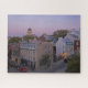 Quebra-cabeça de Jigsen, que apresenta a Cidade Velha do Quebec (Vieux-Québec) no crepúsculo, como se vê em um dos muros da cidade, olhando para a Rua de John. Foto do designer ©sjasis