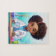 Cientista negra nº 1 quebra-cabeça de serra. Jovens Negras Trabalhando como Cientistas em um laboratório.