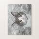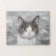 Cinza e gata de tuxedo branco na face de uma cinza abstrato e fundo branco para um quebra-cabeça de quebra-cabeça extra