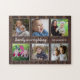 Quebra-cabeça de quebra-cabeça fotográfica para personalizar com 6 fotografias. Personalize o quebra-cabeça de colagem de fotos de fundo da textura de madeira com seu nome familiar.