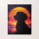 Pôr do sol retrô cockapoo Puzzle com uma bela silhueta de cockapoo contra um vibrante pôr do sol na praia. Este design é perfeito para donos de cockapoo, mães de cockapoo, pais de cockapoo e amantes de cães que adoram esta raça brincalhona e carinhosa.