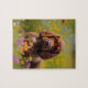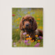 Este quebra-cabeça apresenta um paniel giro num campo de flores silvestres.