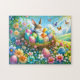 Quebra-cabeça Coelhinho de Páscoa com Ovos em Jardim Flor -