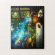 Coffee Imaginings Cafe Imagination Jigsaw Puzzle - the pretty coffee mug standing on this table sends the imagination soaring into thoughts and ideas that create an entire planet in its steaming coffee aroma and the serenity of the moment. Favorite cafe or at home, this is a coffee break to have mentally wandering into thoughts and imagination about possibilities and options and creating what has never been done before. Amazing visually comforting and inspiring jigsaw puzzle for someone you love. Artwork, original design and concept created with my work combined through AI into generative content for this beautiful coffee moment artwork by CricketDiane 2025 and Cricket House Studios Art and Design.