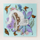 Um bonito gato branco com asas fadas sobre um cogumelo com flores em um pano de fundo azul brilhante