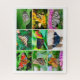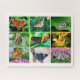 Quebra-cabeça de Jigserra com 9 fotos de belíssimas borboletas, entre elas o Velho Mundo (Papilio machaon), amarelo, preto, azul e vermelho; a borboleta-pavão (Aglais io), vermelha com manchas redondas coloridas; a borboleta azul-e-azul-tigre (Tirumala limniace), a borboleta-marrom-bukeye (gênero Junonia), com manchas redondas coloridas; e a borboleta fritilar, amarela com manchas pretas. Este quebra-cabeça de serra de 520 peças é normalmente adequado para crianças com 9 ou 10 anos de idade.