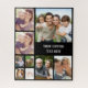 Um quebra-cabeça de colagem personalizada com 9 fotos de família, animais de estimação, memórias, eventos, fotografia, etc. e uma ou duas linhas de texto em uma simples tipografia branca contra fundo preto. As cores do fundo e do texto podem ser alteradas editando-se na ferramenta design.