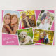quebra-cabeça personalizado para o ecrã panorâmico - adicione 5 das suas fotografias favoritas e o seu texto personalizado. O design apresenta uma colagem de fotos de 5 fotos, cada uma com uma imagem branca. As fotos estão em um fundo cor-de-rosa e seu texto personalizado está escrito em uma tipografia de roteiro legal. A amostra de texto diz "nós te amamos [nome]" que você pode personalizar. Este quebra-cabeça de 1000 peças daria um presente de aniversário encantador para uma menina de 9 a 90 anos!