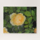 Gotas de chuva escutam num rosa amarelo cremoso em Inglês em meio a um mar de folhas verdes brilhantes. Esta pintura digital é baseada em uma fotografia original de Jayne Wilson.