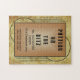 quebra-cabeça de quebra-cabeça de 11" x 14" de um elegante design de faixas e círculos de Art Deco sobre ouro antigo. Veja o convite para cartão de 6,5" x 8,75" correspondente, convite para cartão de 5" x 7", envelope, etiqueta de presente, etiqueta, adesivo retangular e papel de embalagem. Veja toda a coleção de convites para Quebra-cabeça do Roaring 20s nas ATIVIDADES | Seção Quebra-cabeça.