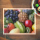 Fotografia de uma variedade de frutas coloridas impressas na borda de quebra-cabeça.