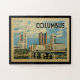 Columbus Ohio design em estilo Viagens vintage com uma vista de horizonte de horizonte de cidade expansiva.