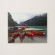 Quebra-cabeça com canoas canadianas no lago